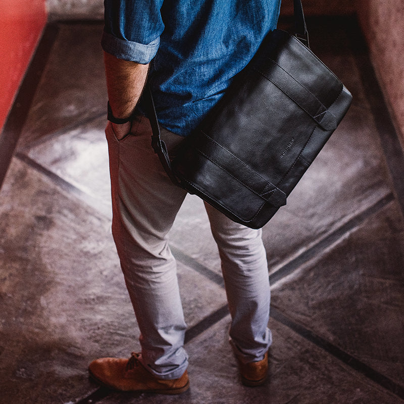 Com uma estrutura de couro reforçada, a messenger bag é elegante e funcional tanto para o dia a dia quanto para viagens.