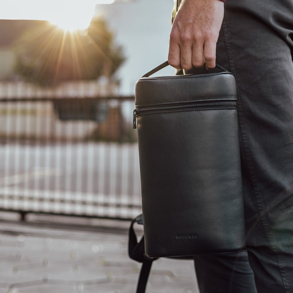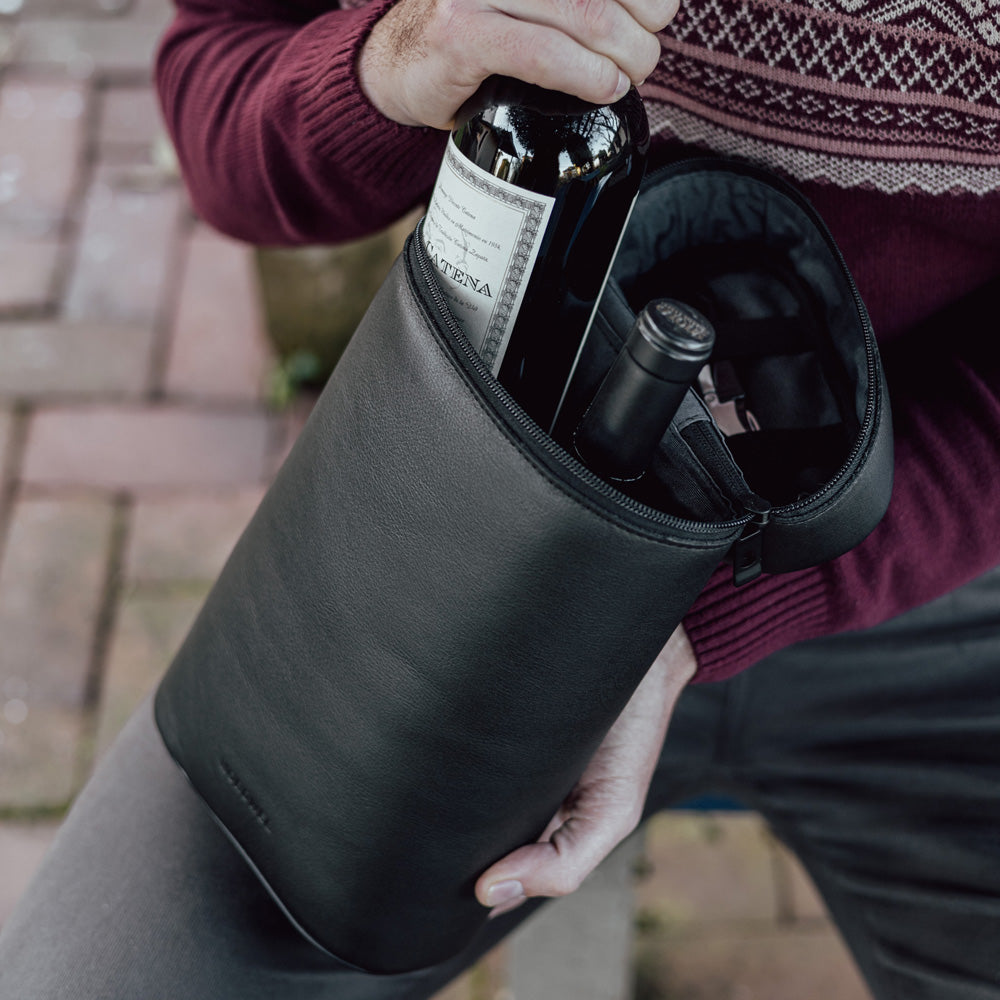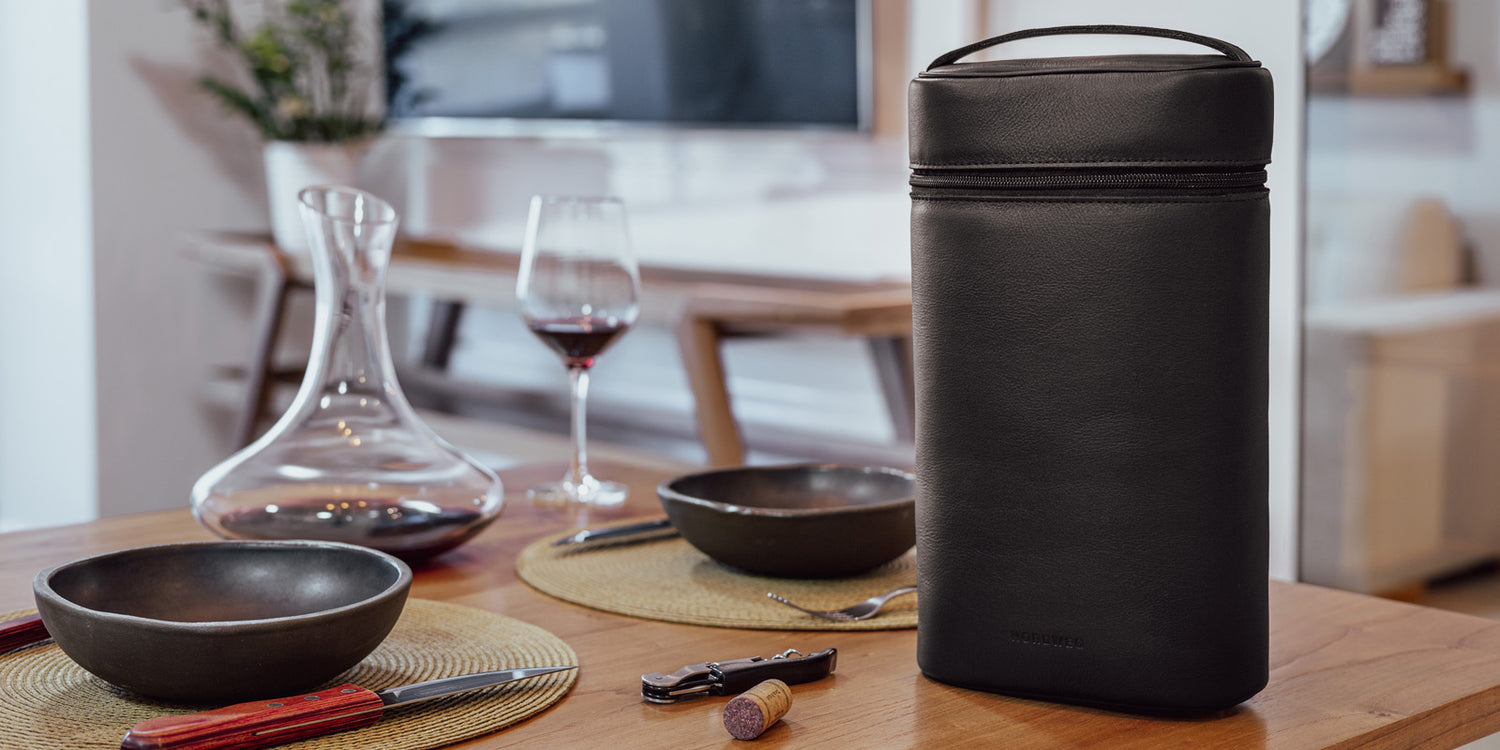 Para transportar suas garrafas com segurança, criamos o novo Porta Vinhos. Com um design minimalista e elegante, ele acomoda até duas garrafas e um saca rolhas.